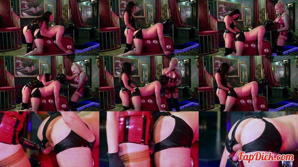 Lady Bella has her sub all ready for some spitroast pegging. He’s set up in rubber